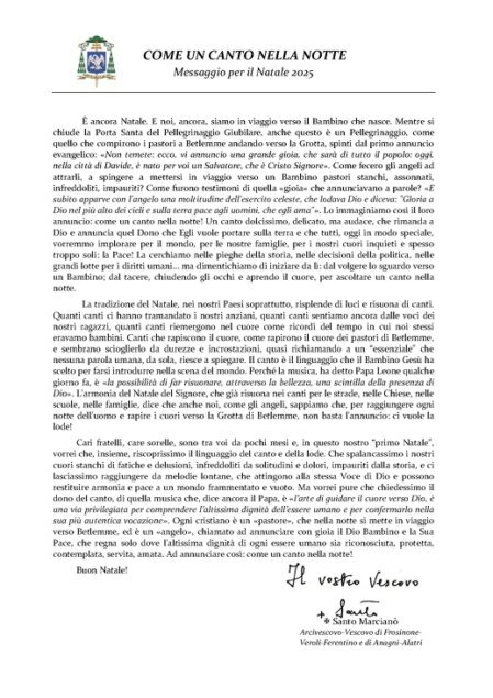 il Messaggio dell’Arcivescovo Santo per il Natale 2025